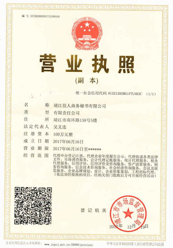 本站關鍵詞:靖江代辦營業執照、靖江代理記賬